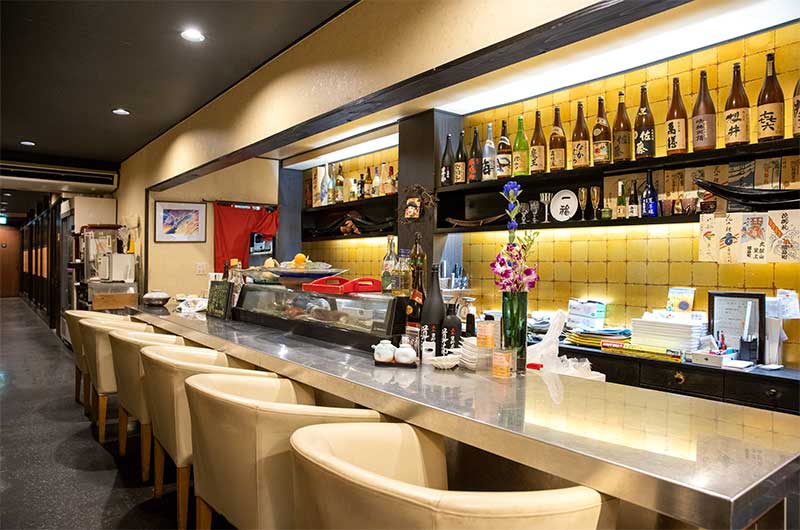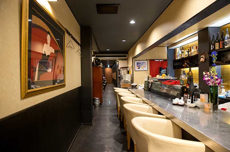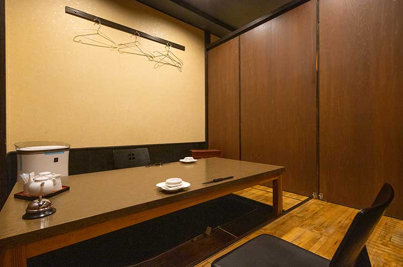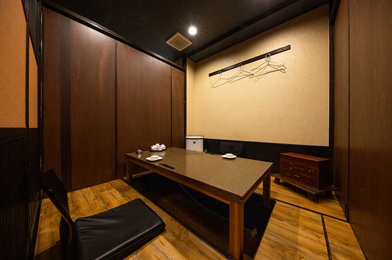 店内は縦に長い間取りで、入口にカウンタ―席、奥に掘りごたつ席を配しております。和モダンな落ち着きのある雰囲気で、ゆったりとお過ごしいただくことができます。4名~6名様の小グループのご利用に最適ですが、団体様の場合、掘りごたつを隣り合わせで、10名様まで収容可能です。もちろんお一人様のご来店も大歓迎です!